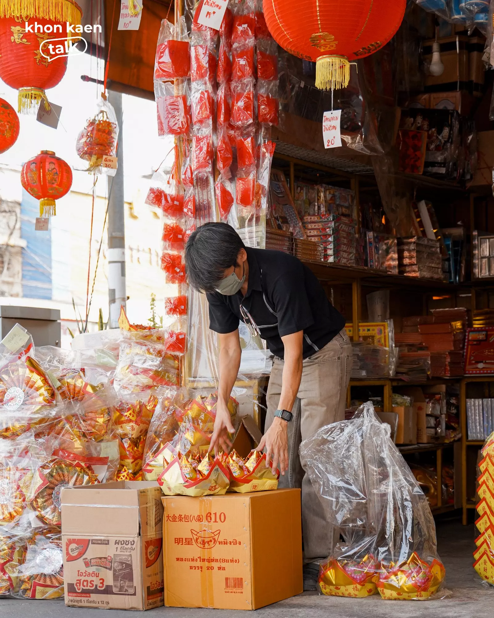 หนึ่งในเอกลักษณ์สำคัญของร้านคือ “งานพับกระดาษไหว้เจ้าด้วยมือ” ที่สืบทอดมาตั้งแต่รุ่นป๊า โดยมีอาม่าที่ในอดีตอพยพมาจากจีนเป็นผู้ถ่ายทอดวิชาการพับทุกขั้นตอน คุณศราวุฒิกล่าวว่าในอดีตกระดาษไหว้มีรูปแบบที่หลากหลาย และขั้นตอนที่ละเอียดอ่อน แต่เมื่อกาลเวลาเปลี่ยนไป รูปแบบค่อย ๆ ลดลงเหลือเพียงแบบทั่วไปตามตลาด เนื่องจากข้อจำกัดด้านเวลาและแรงงาน ปัจจุบันจึงมีการนำกระดาษสำเร็จรูปจากโรงงานเข้ามาเสริม ซึ่งวัสดุก็เปลี่ยนจากกระดาษอ่อนในอดีต เป็นกระดาษแข็งที่ผลิตเป็นชุดสำเร็จมากขึ้น