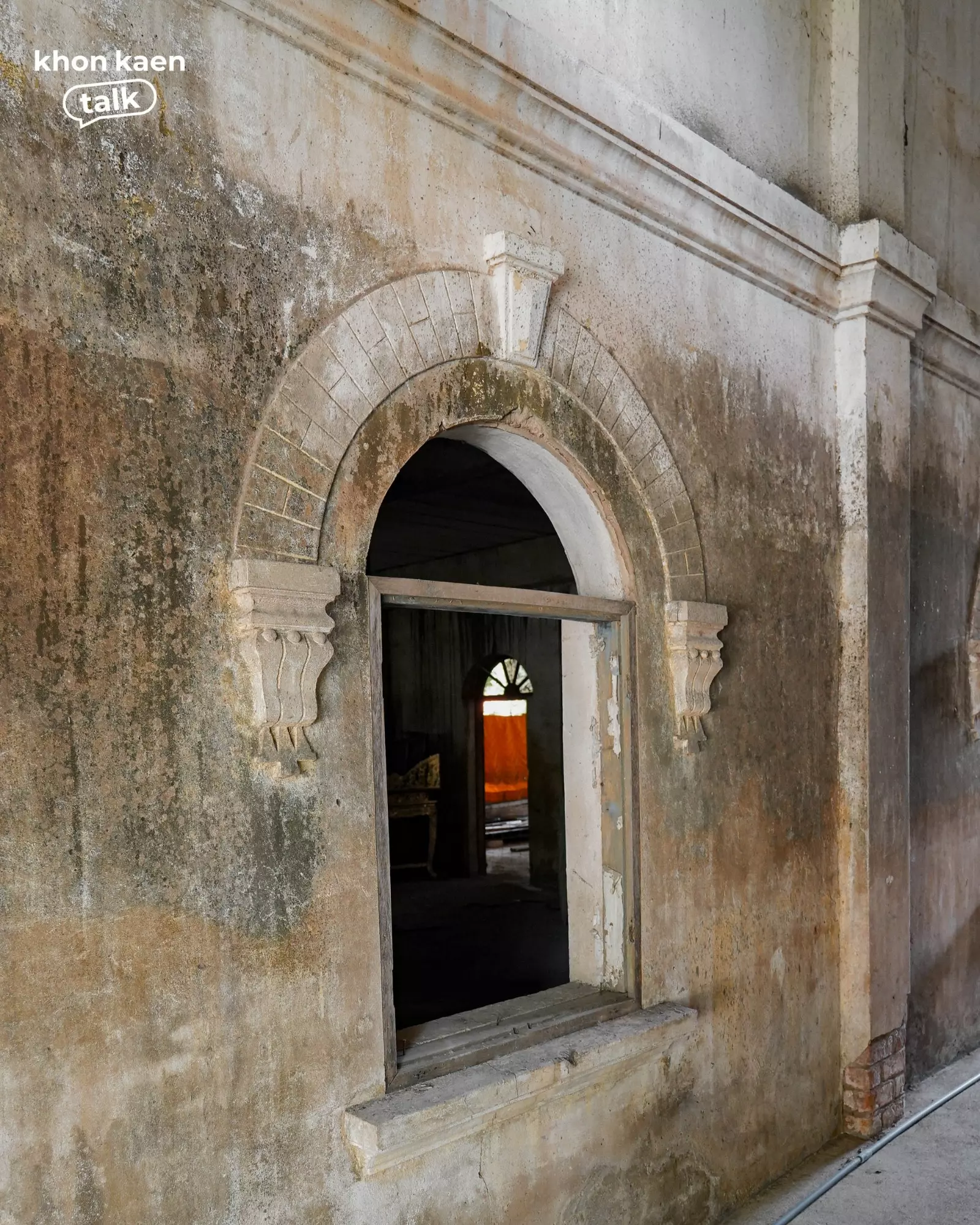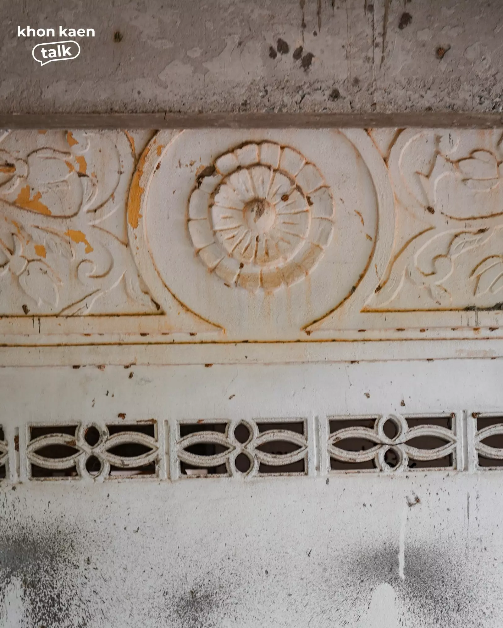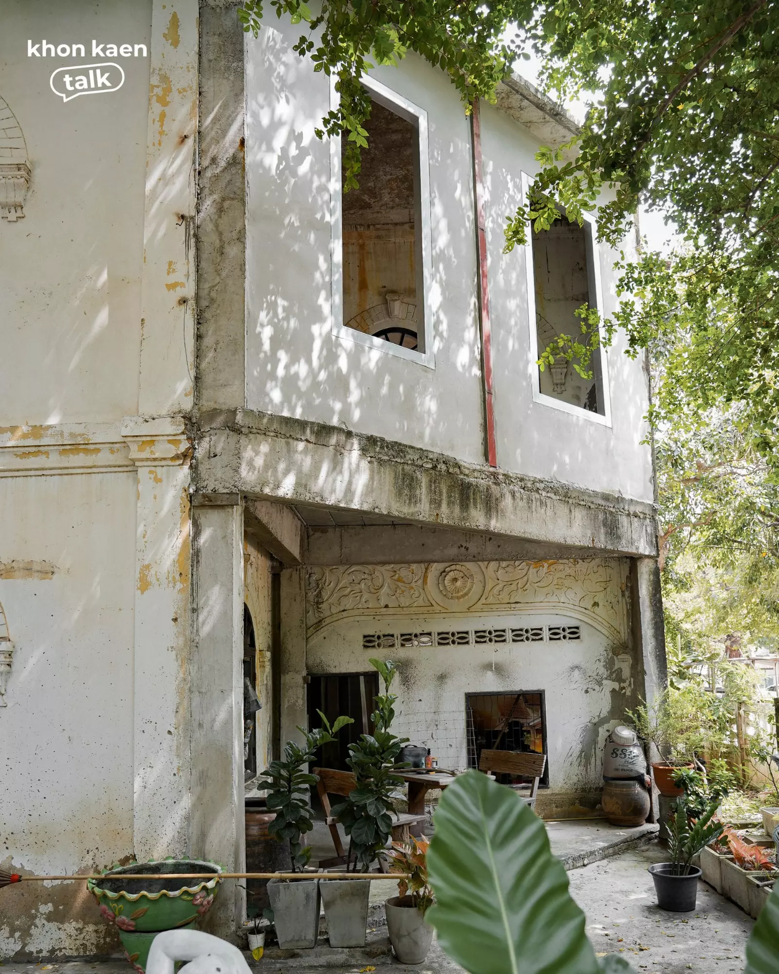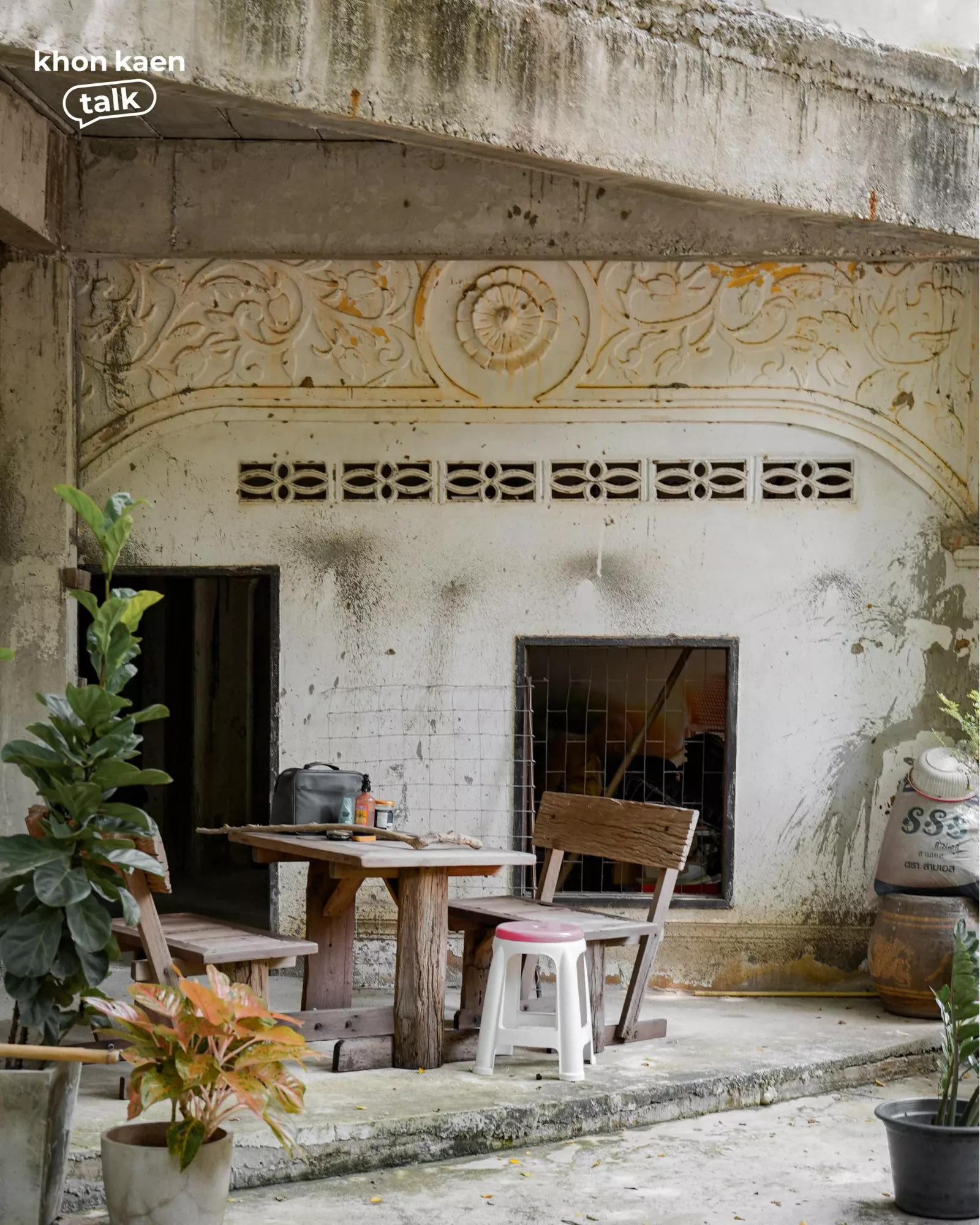 ท่ามกลางเรือนไม้และศาลาใหม่ที่ผุดขึ้นในวัดศรีจันทร์ตามกาลเวลา “กุฏิ 2495” ยังคงยืนอยู่ท่ามกลางร่มไม้ใหญ่ อาคารสองชั้นสีขาวหม่นหลังนี้ คือสถาปัตยกรรมที่บันทึกช่วงเวลาสำคัญของเมือง โครงสร้างปูนผสมไม้ ลวดลายปูนปั้นเหนือช่องหน้าต่าง และซุ้มโค้งเหนือประตู สะท้อนฝีมือช่างยุคหลังสงคราม ซึ่งเป็นช่วงเดียวกับที่เมืองขอนแก่นเริ่มเปิดรับผู้คนจากต่างถิ่น โดยเฉพาะชาวเวียดนามและจีนที่เข้ามาค้าขายและตั้งรกรากในเมืองขอนแก่นนั่นเอง