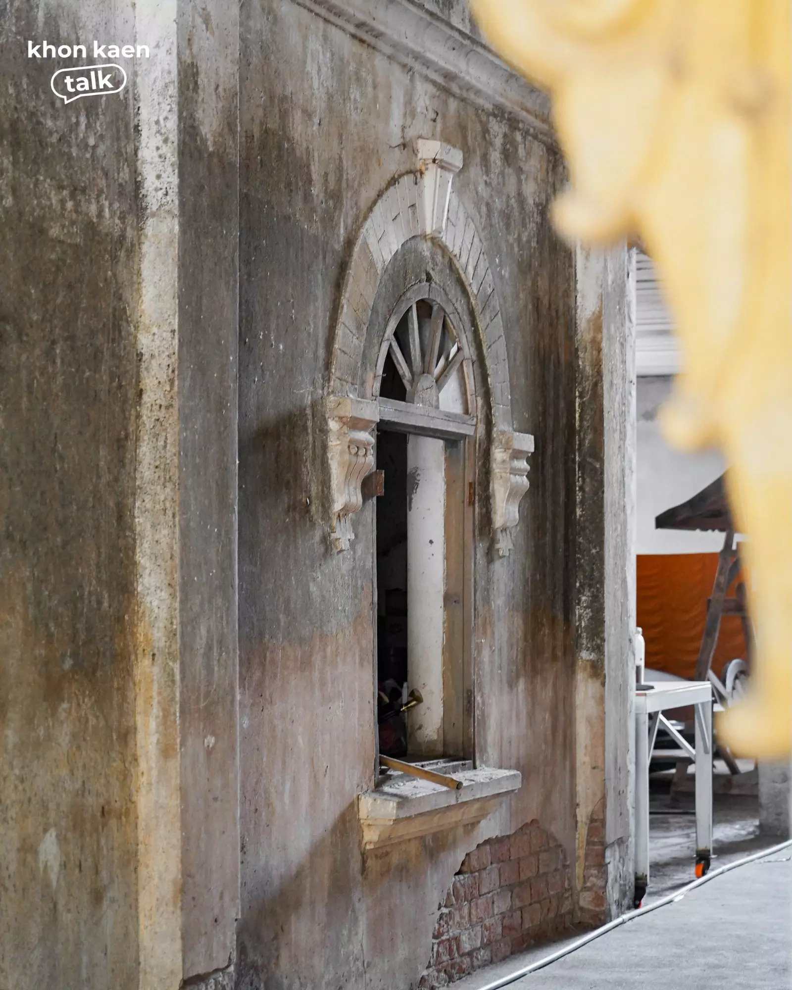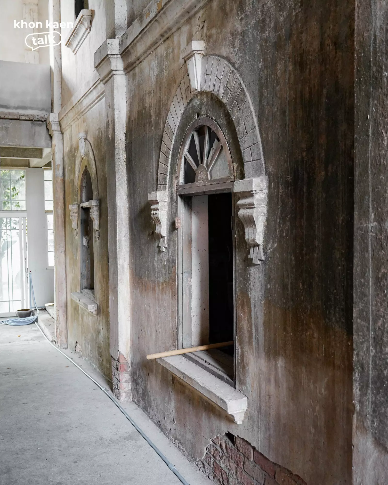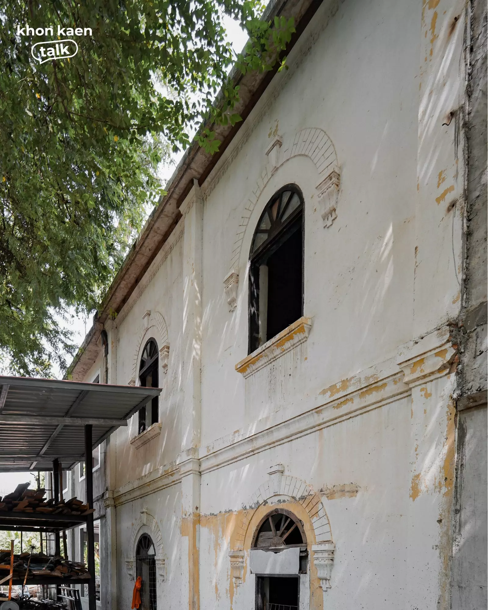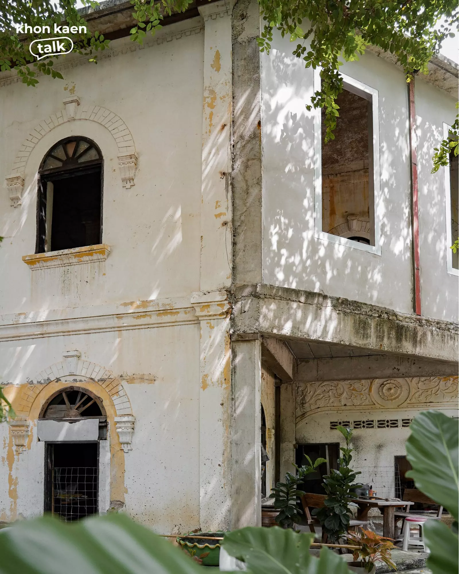 ท่ามกลางเรือนไม้และศาลาใหม่ที่ผุดขึ้นในวัดศรีจันทร์ตามกาลเวลา “กุฏิ 2495” ยังคงยืนอยู่ท่ามกลางร่มไม้ใหญ่ อาคารสองชั้นสีขาวหม่นหลังนี้ คือสถาปัตยกรรมที่บันทึกช่วงเวลาสำคัญของเมือง โครงสร้างปูนผสมไม้ ลวดลายปูนปั้นเหนือช่องหน้าต่าง และซุ้มโค้งเหนือประตู สะท้อนฝีมือช่างยุคหลังสงคราม ซึ่งเป็นช่วงเดียวกับที่เมืองขอนแก่นเริ่มเปิดรับผู้คนจากต่างถิ่น โดยเฉพาะชาวเวียดนามและจีนที่เข้ามาค้าขายและตั้งรกรากในเมืองขอนแก่นนั่นเอง