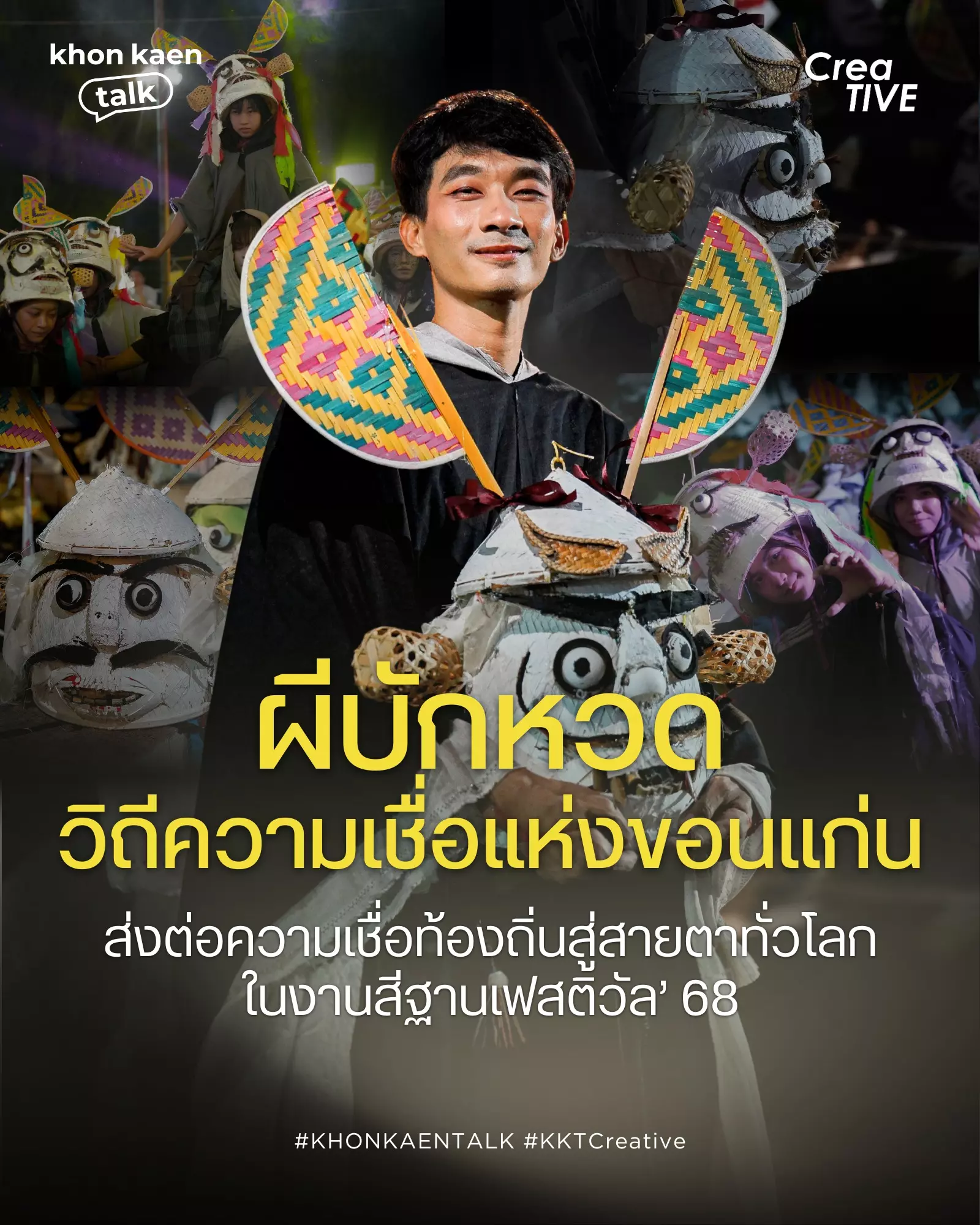 ในดินแดนที่ศรัทธา และความเชื่อยังคงอยู่ “ผีบักหวด” คือสัญลักษณ์ของการรื้อฟื้นความเชื่ออีสานในรูปแบบร่วมสมัย ที่เกิดจากการผสมผสานระหว่างเครื่องจักสานพื้นบ้านอย่าง “หวด” กับคติความเชื่อเรื่องผีผู้ปกปักษ์รักษาไร่นา เชื่อกันว่าผีบักหวดจะช่วยคุ้มครองให้การเพาะปลูกอุดมสมบูรณ์ ปกปักรักษาผืนดินและสายน้ำในช่วงฤดูฝน เป็นหนึ่งใน “ผีแห่งการให้” ที่อยู่คู่ชีวิตคนอีสานมาหลายชั่วอายุคน