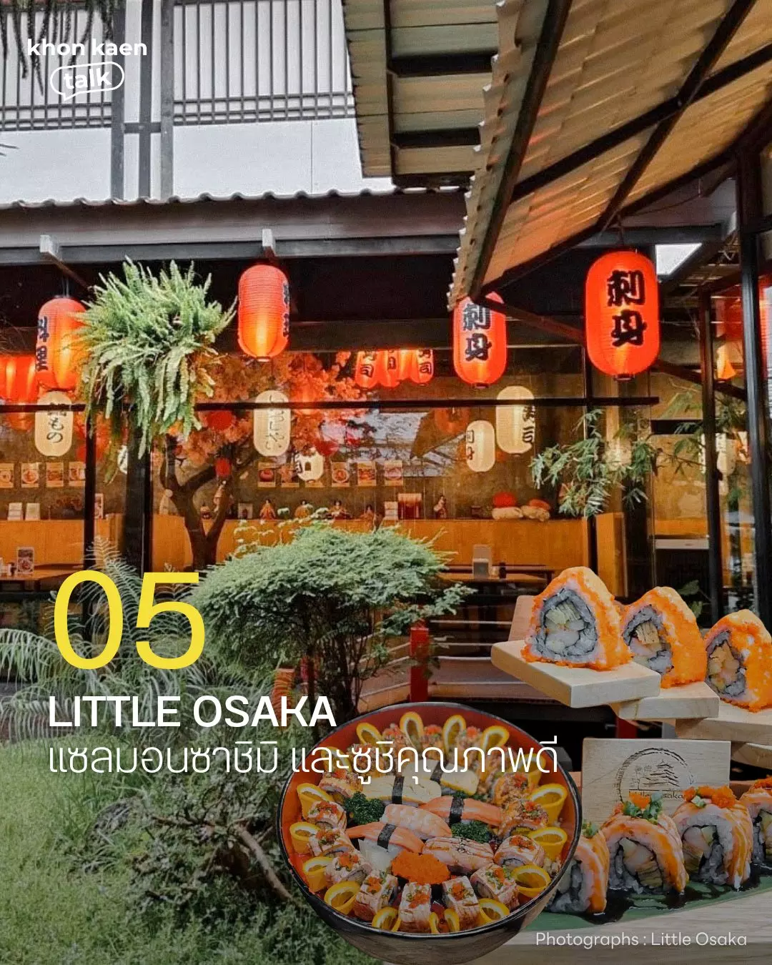 ━ Little Osaka ร้านญี่ปุ่นแท้ที่ตกแต่งเหมือนยกโอซาก้ามาไว้ขอนแก่น จุดเด่นคือแซลมอนซาชิมิชิ้นใหญ่และซูชิคุณภาพดีในราคามิตรภาพ เหมาะทั้งมื้อกลางวันและดินเนอร์